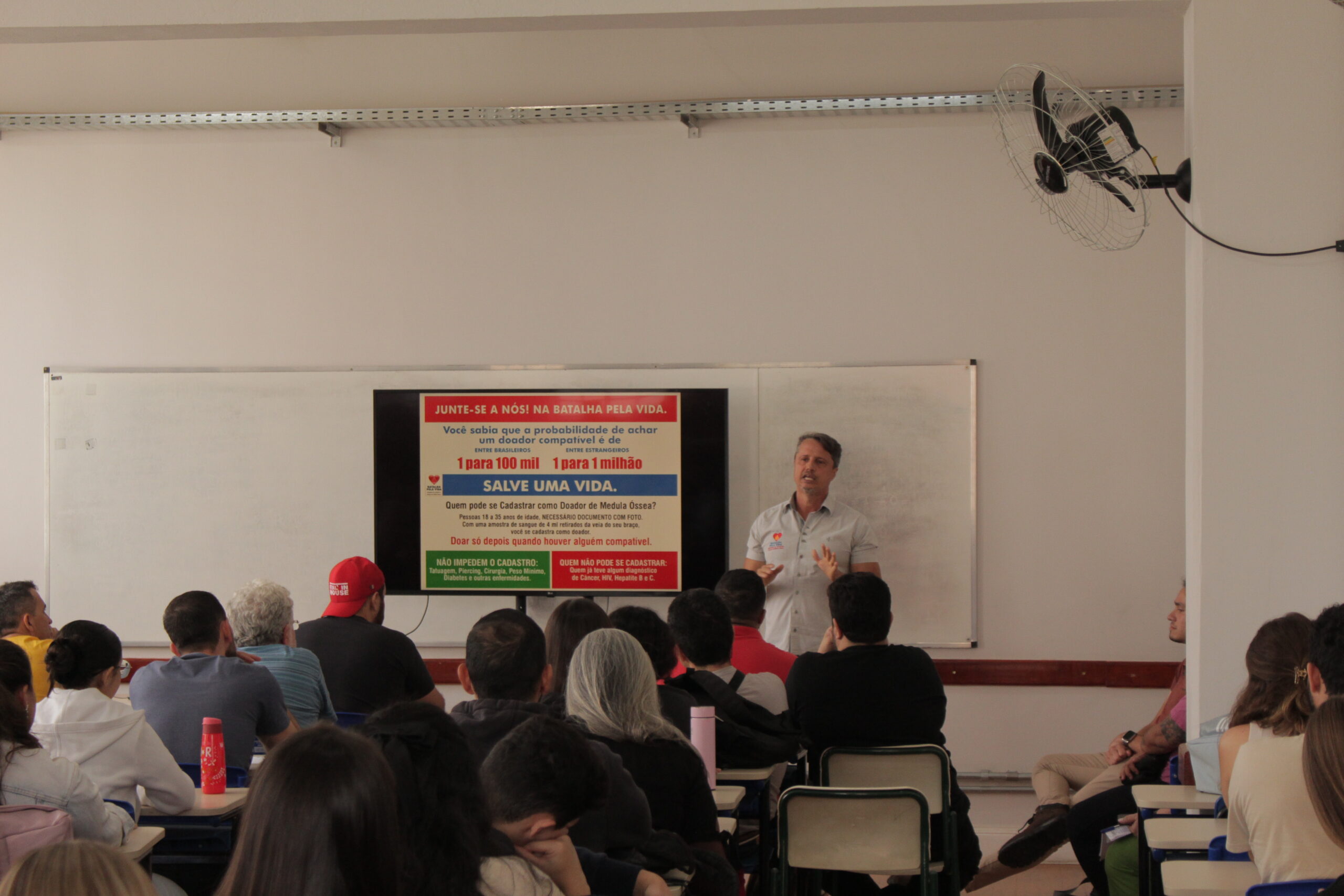 A ação, intitulada “Conscientização sobre Cadastro de Medula Óssea e Doação de Sangue, foi ministrada pelo Major Anderson Nunes em diversas salas de aula, e integra a campanha “Batalha pela vida”.