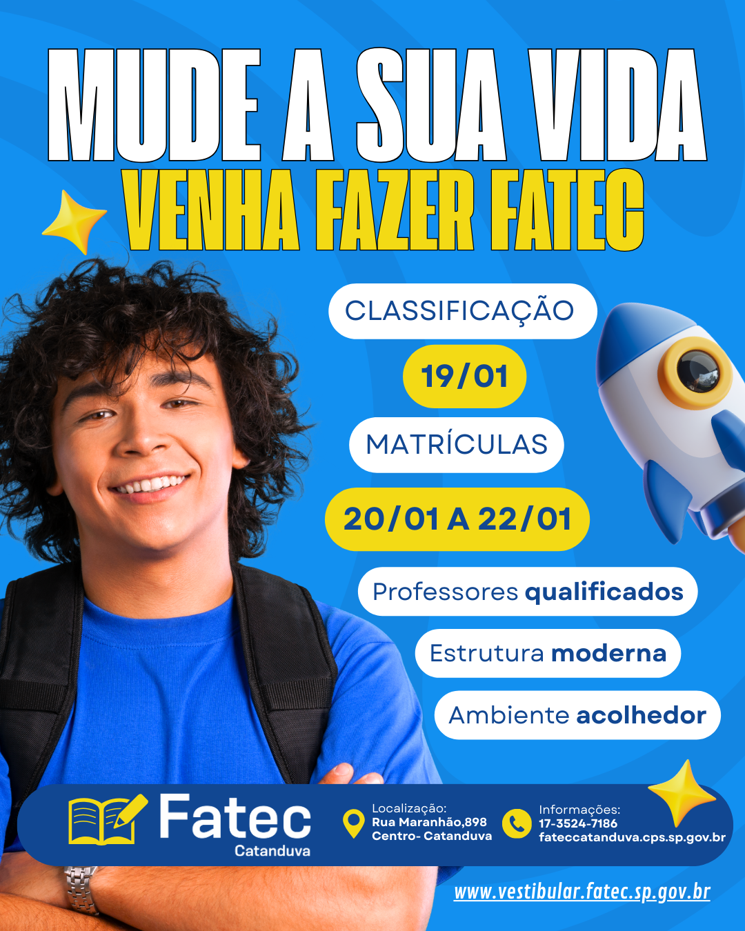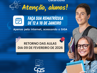 Os aprovados na 1ª chamada têm até o dia 22 de janeiro para se matricularem. A classificação completa dos candidatos que prestaram o vestibular para o 1º semestre de 2026 está disponível no site www.vestibular.fatec.sp.gov.br […]