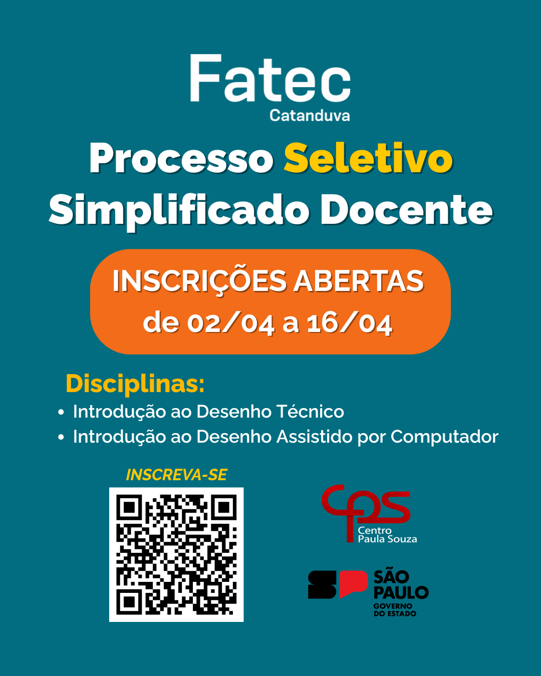 📢 EDITAL 182/22/2026 ⚡ Disciplina: Introdução ao Desenho Técnico 🕒 Inscrições: Até às 23h59 do dia 16 de abril de 2026 🌐 Pelo site: https://urhsistemas.cps.sp.gov.br/dgsdad/selecaopublica 📌 Detalhes da vaga:• Área: Arquitetura e Planejamento Urbano / […]