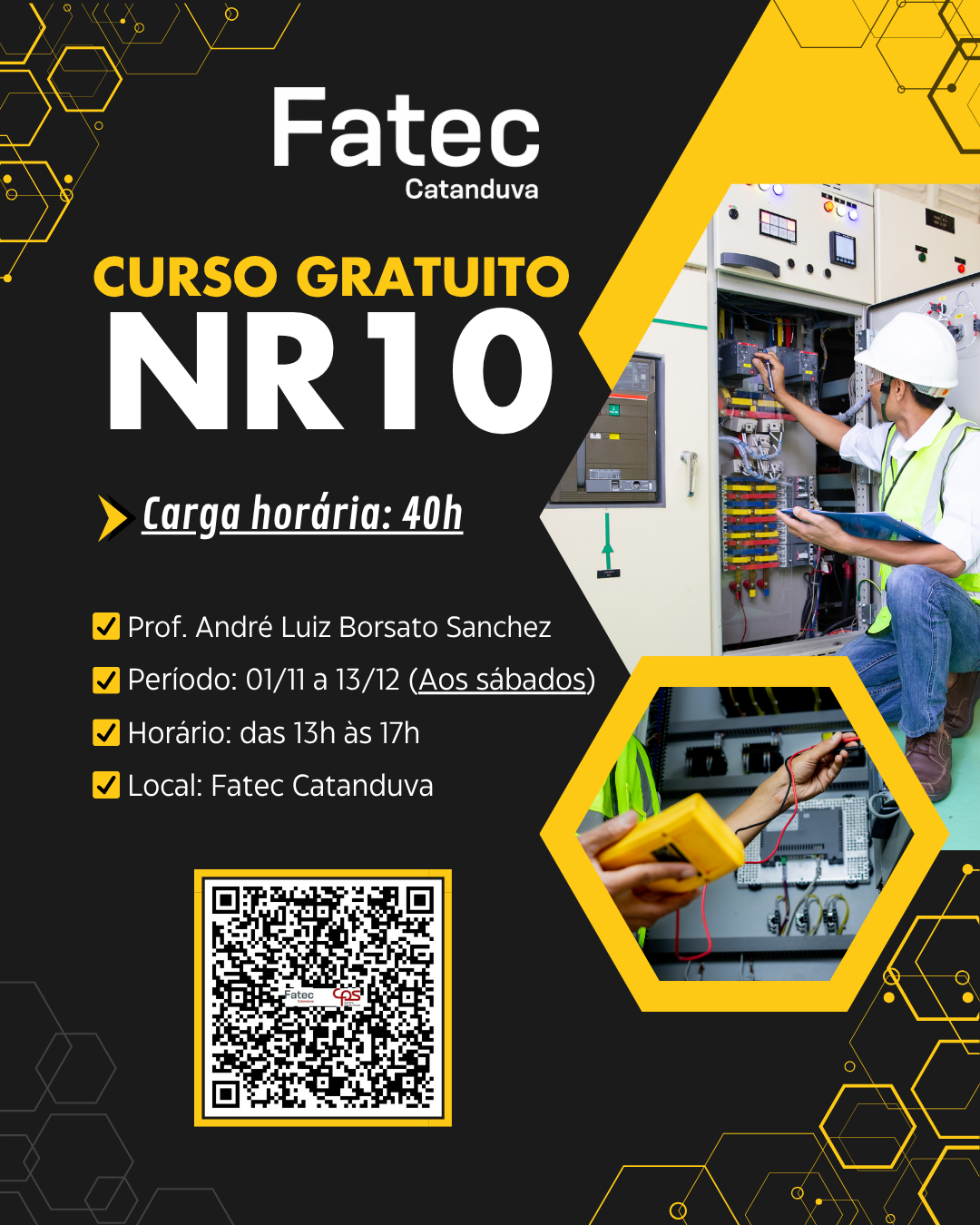 ⚡ Curso Gratuito de NR10 – Segurança em Instalações Elétricas! ⚡ ⚠️ 40 vagas abertas, totalmente gratuito e com certificado reconhecido. 🗓️Início do curso: dia 1º de novembro. Inscrições pelo QR Code ou acessando o […]