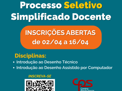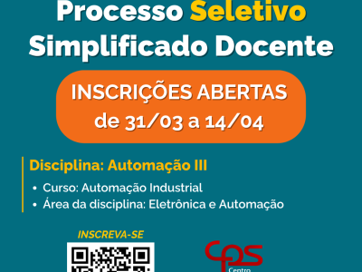 O prazo final das inscrições termina as 15h do dia 1º de junho. 📌 Cursos Disponíveis:✅ Automação Industrial (Noite)✅ Gestão Empresarial (Manhã e Noite)✅ Gestão da Tecnologia da Informação (Noite) 📝 Prova dia 28 de […]